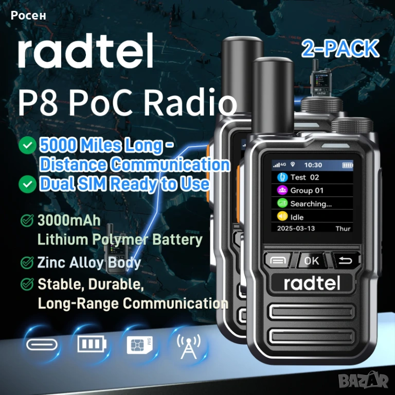 - Radtel P8 – глобално Push-to-Talk радио