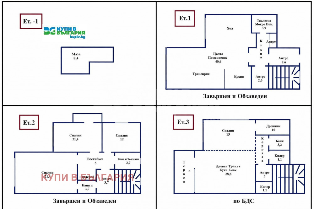 Етажност: 3 жилищни етажа + маза