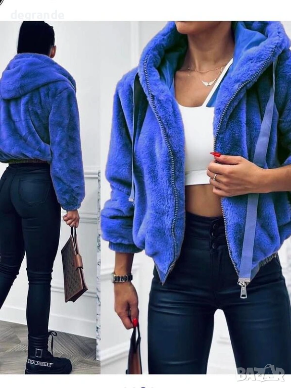 Кафяво и Синьо Дамско пухкаво яке → Обява 53008559