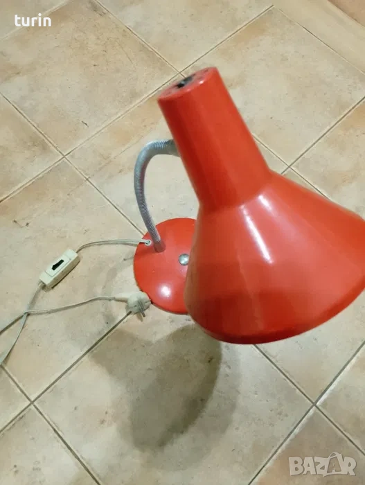 Използвана настолна лампа в оранжево-бял цвят. Лампата има гъвкаво рамо