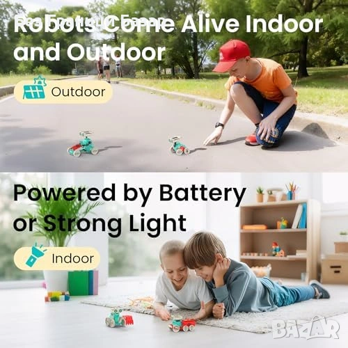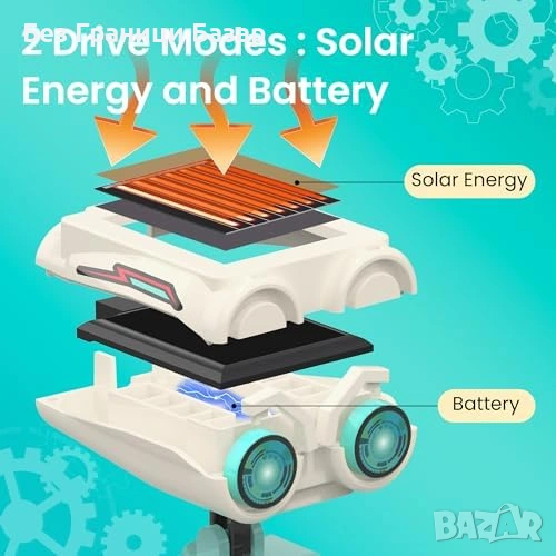 Соларно и батерийно захранване – демонстрира работа със слънчева енергия и движение