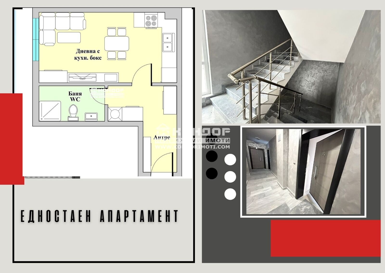 Оферта 63889 - Нова луксозна сграда, намираща се на чудесно място в район 'Южен', съчетаваща в себе си модерната архитектура с високо качество на строителство и усещането за уют и спокойствие. Намира се в най-атрактивния и предпочитан за живеене и инвестиция квартал на Пловдив Кючук Париж, с отлична локация, в близост до училища, детски градини и всички необходими комуникации за нуждите на модерния човек. Жилището което ви предлагаме се състои от дневна с трапезария и кухненски бокс, баня с тоалетна и входно антре. Степен на завършеност: стени и тавани - шпакловка, под - циментова замазка, балкони - гранитогрес, мокри помещения-замазка и мазилка, парапети по балкони - стъклени, дограма - PVC с многокамерен профил, врати - външна блиндирана, хидравличен асансьор, луксозни общи части.