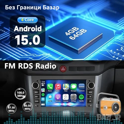 Нова Авто навигация Android 15 Opel Vivaro Vectra CarPlay кола автомобил