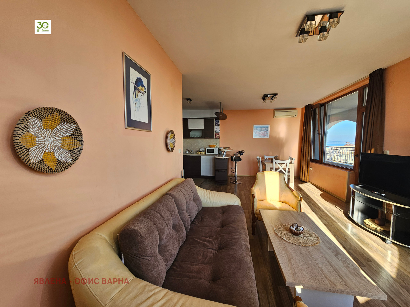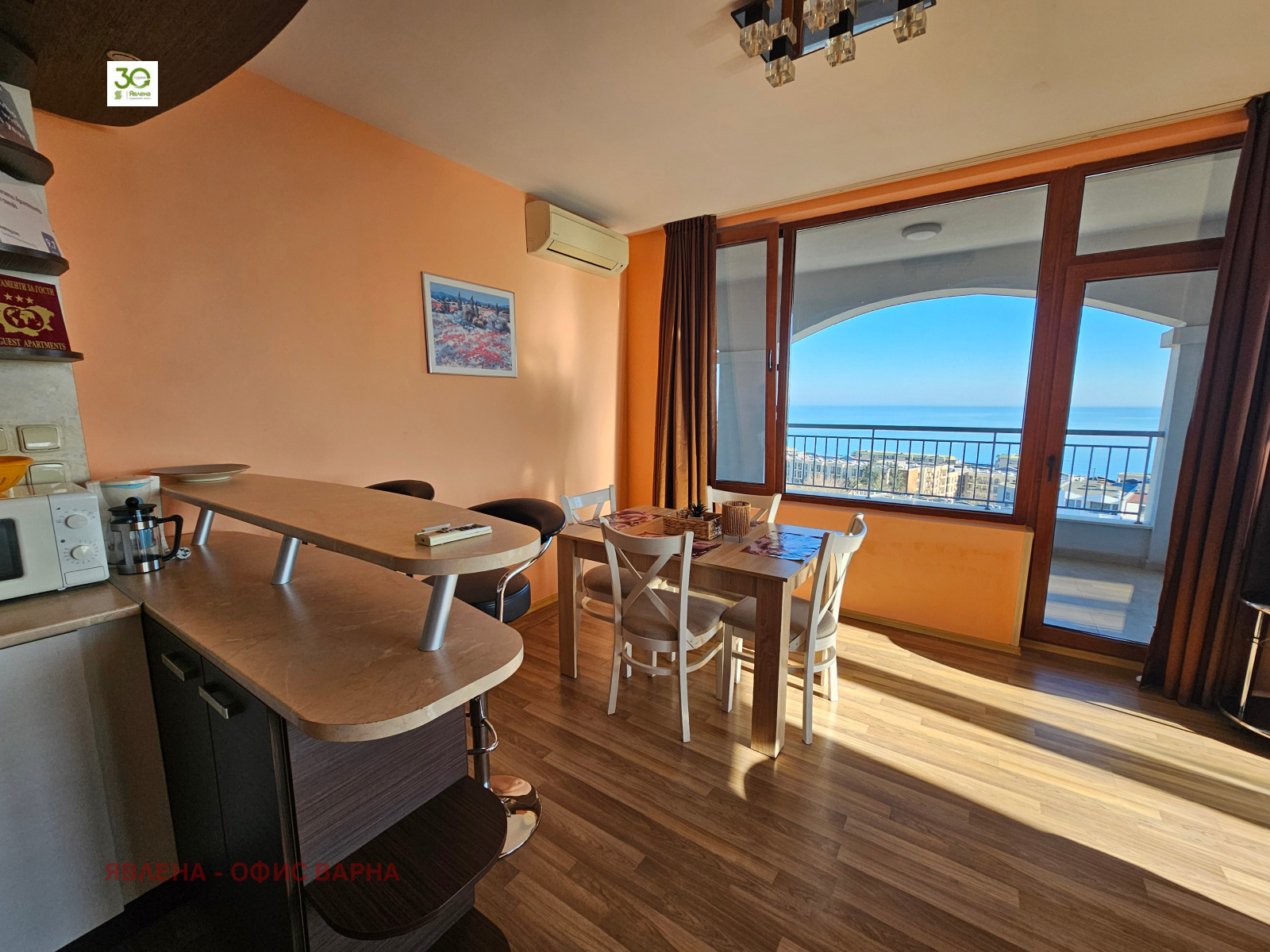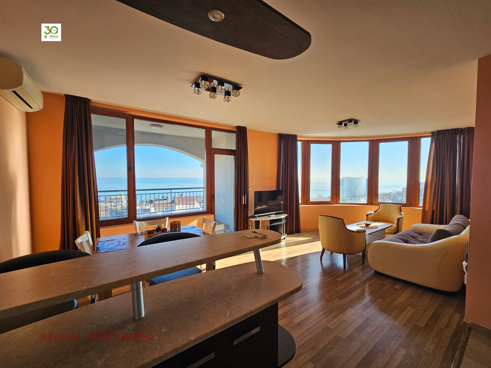 Предлагаме просторен тристаен апартамент с впечатляваща фронтална гледка към морето, разположен близо до плажа и морето, в централната част на к.к. Златни пясъци. Имотът е с площ от 137 кв.м и се намира на 7-ми етаж от осеметажна сграда, с предпочитано югоизточно изложение. Всички помещения са ориентирани към морето и разкриват красива панорамна гледка към хоризонта и целия курорт.