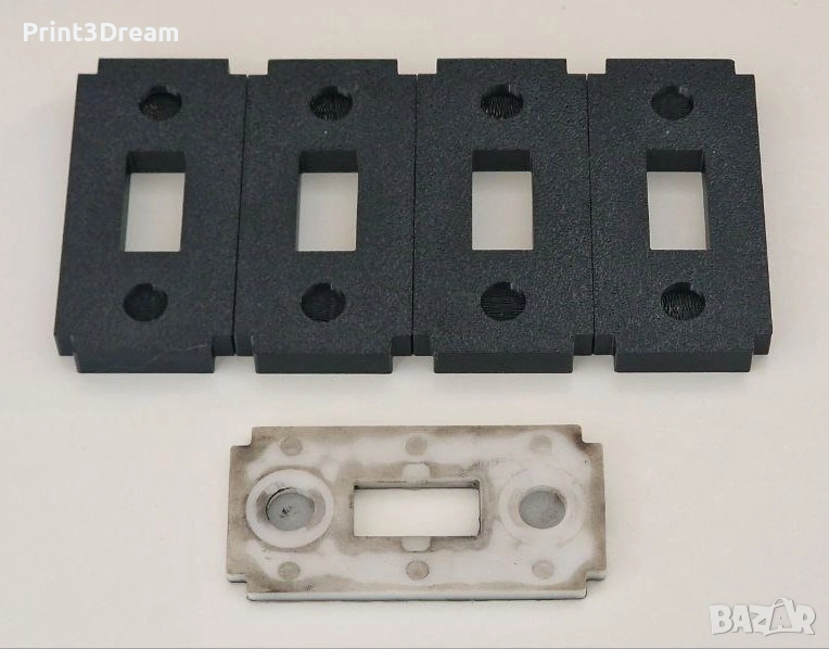 Изработка на подсилен преден водещ плъзгач с отвор за количките на електромеханични подемници SPACE, RAVAGLIOLI, BUTLER и SIRIO. Частта е 3D принтирана чрез прецизно обратно инженерство (reverse engineering) спрямо оригиналния детайл с каталожен номер 047219010, с подобрена конструкция и увеличена дебелина от 6 на 10 мм за по-висока издръжливост при работа под натоварване.