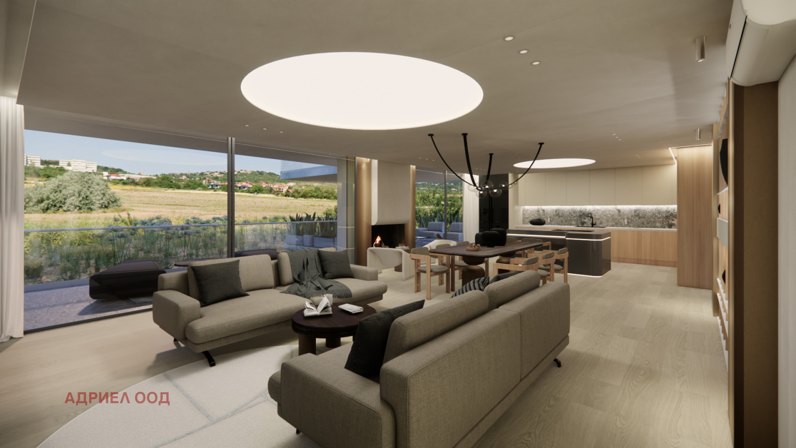 Просторен дневен тракт 71 кв.м. (трапезария, кухня, мек кът)