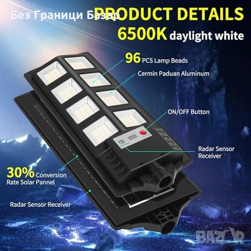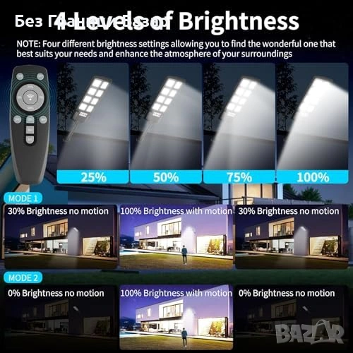 Нови Соларни външни лампи 2 броя 6500K PIR сензор и дистанционно за двор