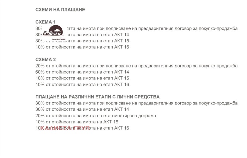Схеми на плащане на различни етапи от строителството.