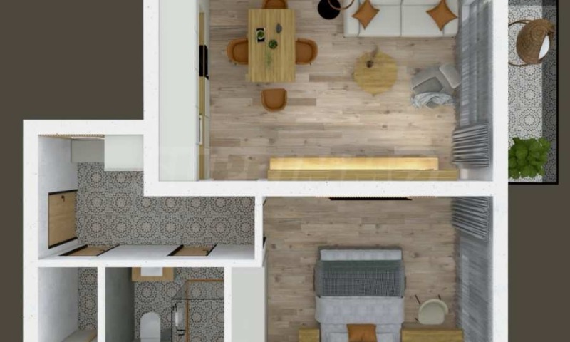 Предлагаме за продажба двустаен апартамент с опция за закупуване на гараж и паркомясто в модерен затворен комплекс.