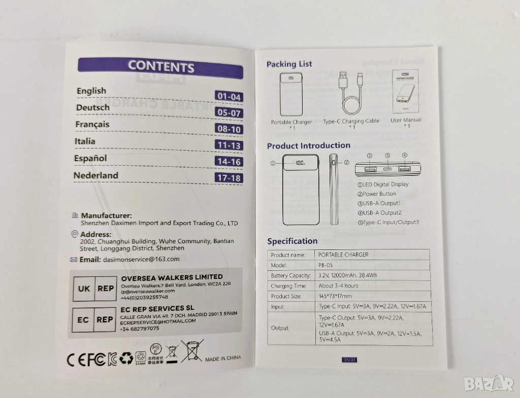 Нова външна батерия 12000mAh, снимка 1 - Външни батерии - 53010358 Нова външна батерия 12000mAh, снимка 2 - Външни батерии - 53010358 Нова външна батерия 12000mAh, снимка 3 - Външни батерии - 53010358 Нова външна батерия 12000mAh, снимка 4 - Външни батерии - 53010358 1/4