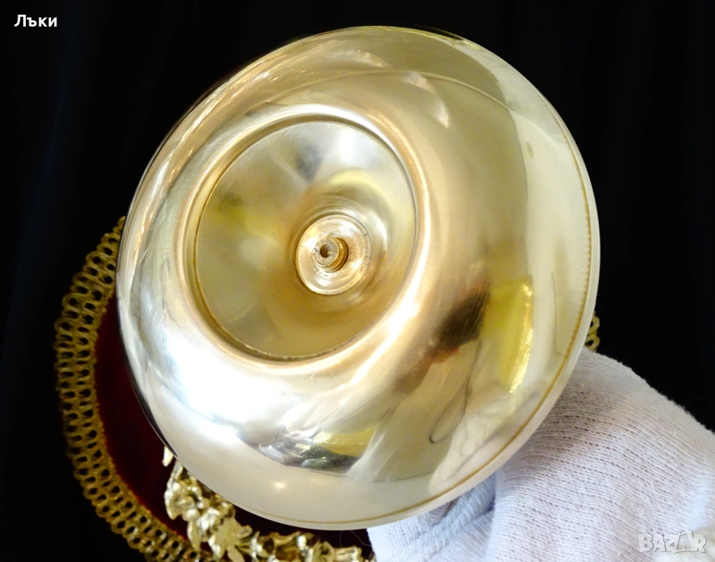 стил,свещника блести като златен.Височина 15 см.,диаметър 12 см.,тегло 320 гр.