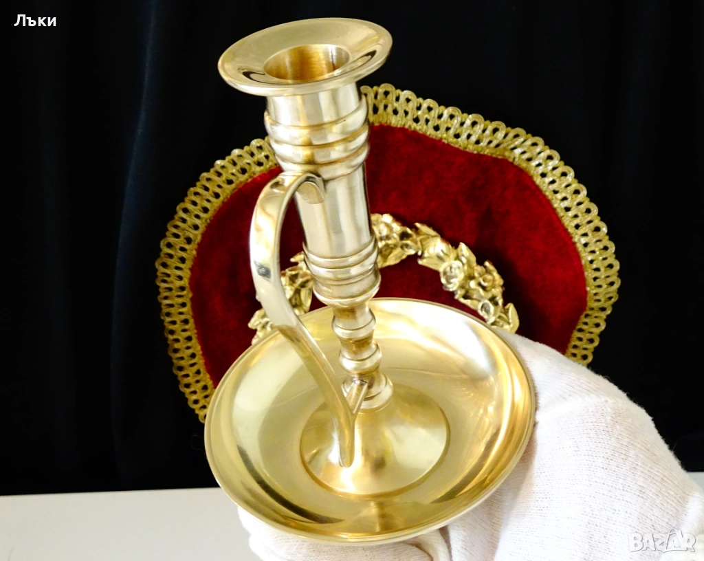 викториански свещник с дръжка,преносим свещник,майсторска ръчна изработка от