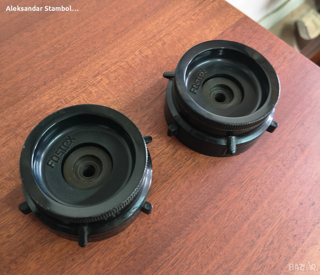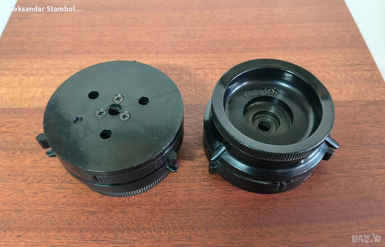 Редки наб адаптери на Fostex. Използват се предимно в лентовите машини на марката, с фиксиращия шип отзад и затягане чрез завъртане (без заключване отпред). Перфектно състояние.