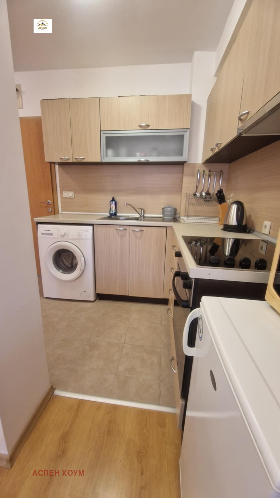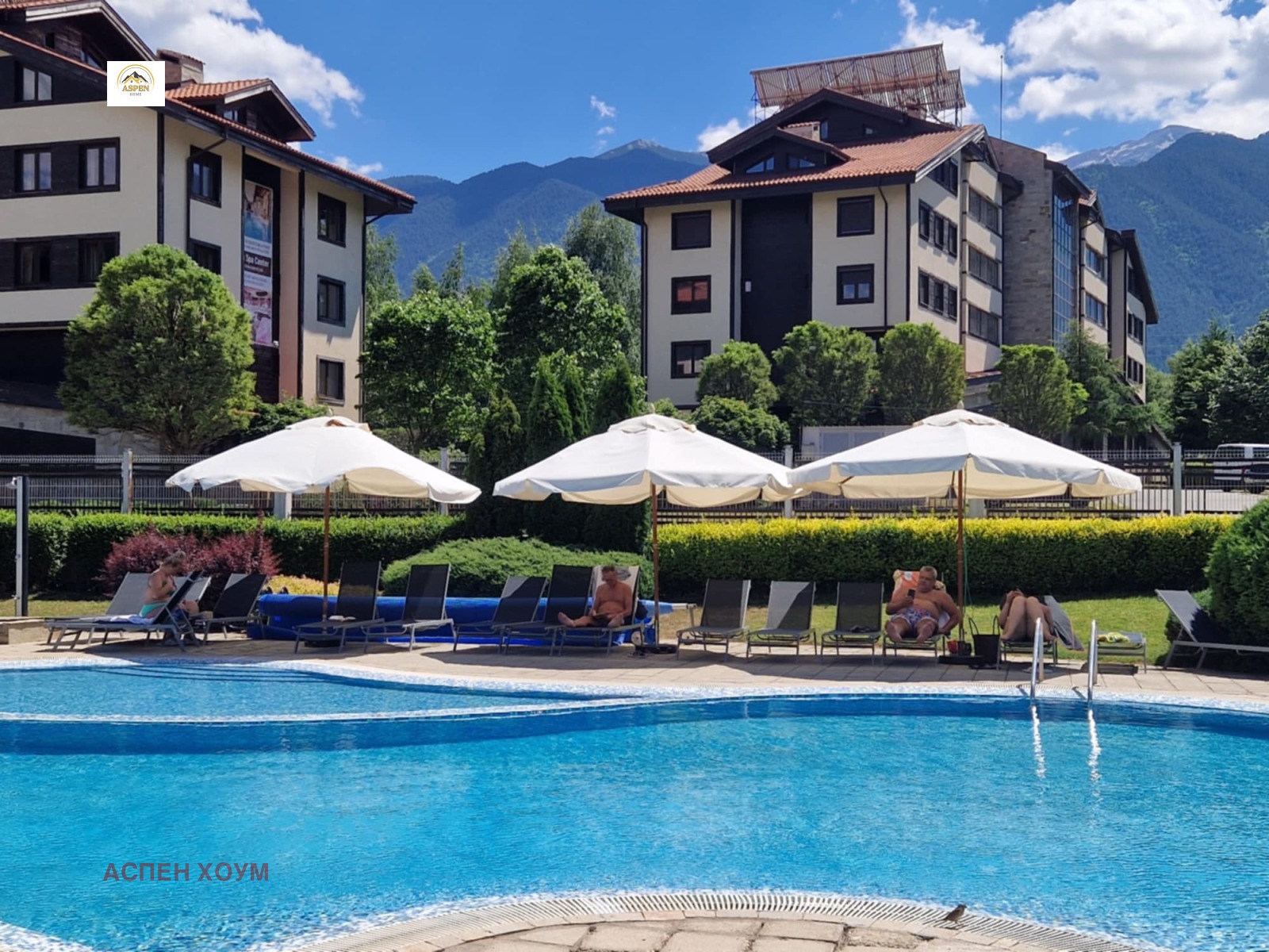 Предлагаме прекрасен обзаведен и напълно готов двустаен апартамент в затворен комплекс Аспен Голф. Уникален външен басейн с термо-помпа за затопляне на водата, красиви и добре поддържани градини, регулярно почистване на имотите срещу доплащане, вътрешен спа център с басейн, сауна, джакузи, парна баня, тенис маса и фитнес зала. Денонощна рецепция и денонощна охрана. Апартаментът е изключително подходящ за отдаване под наем или за жевеене. В близост има магазин за хранителни стоки, няколко ресторанта, ски под наем и конна езда, превоз до ски пистите през зимния сезон. Годишна такса поддръжка 13 евро на квадрат.