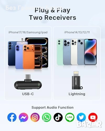 Съвместим с iPhone, iPad, Android, PC чрез USB-C и Lightning OTG адаптери