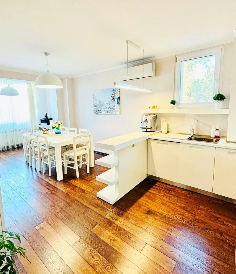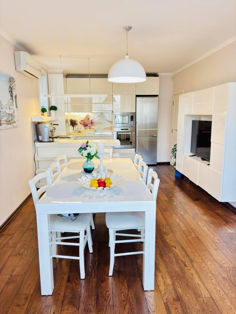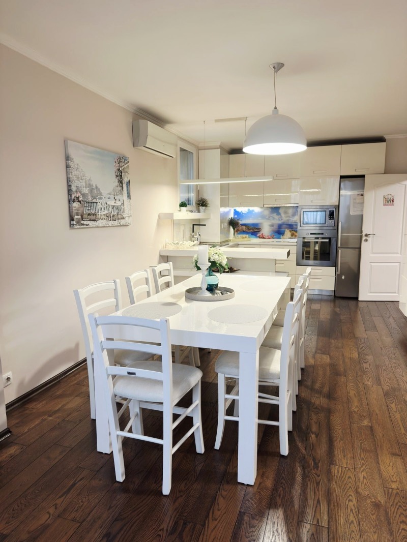 Апартаментът е напълно обзаведен с нови мебели и електроуреди, никога не е отдаван под наем и не е правен с такава цел всичко е подбрано с вкус и внимание към детайла.