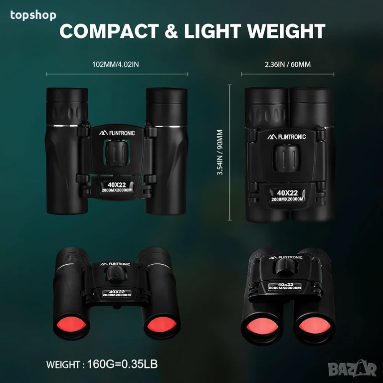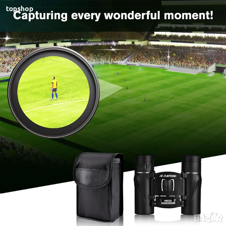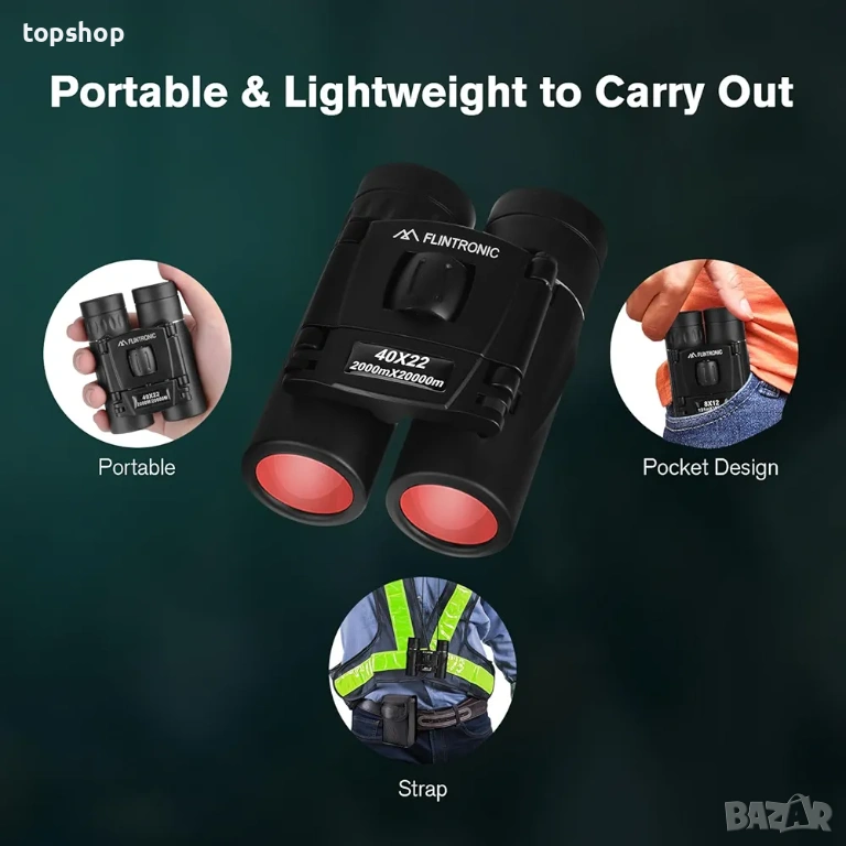 Нов мини бинокъл Flintronic 40 x 22 HD, водоустойчив, преносим, сгъваем, компактен, джобен, малък и лек за възрастни, разглеждане на забележителности, наблюдение на птици, туризъм, къмпинг