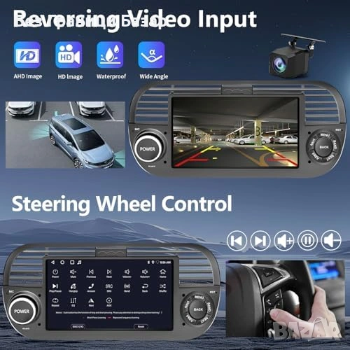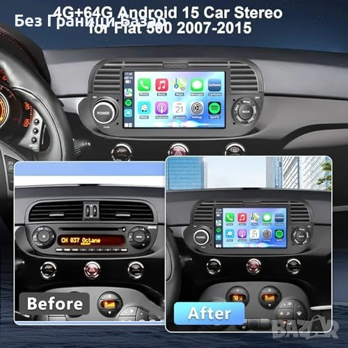 Нова Android 15 мултимедия Fiat 500 7 инча CarPlay GPS WiFi кола автомобил
