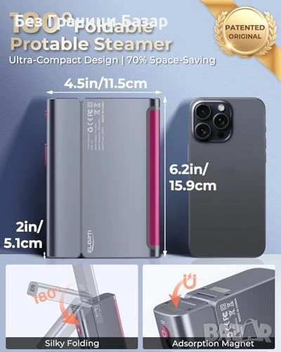 Сгъваем дизайн – компактен размер 158 × 114 × 35 мм