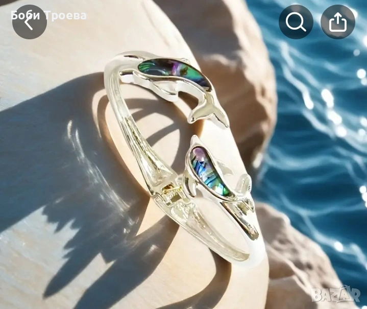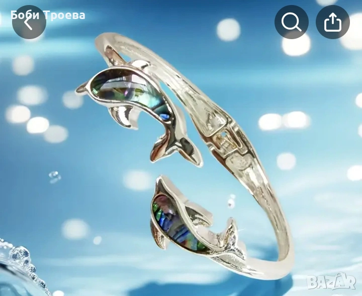 Стилна гривна с отворен дизайн на тема океан с два делфина → Обява 53011799