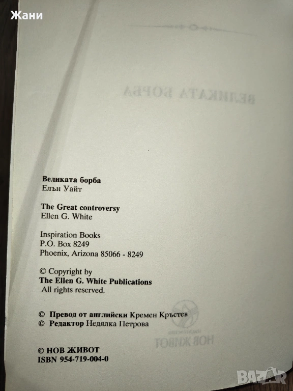 Великата борба между Христос и Сатана Автор: Елън Уайт 440 страници → Обява 53011915