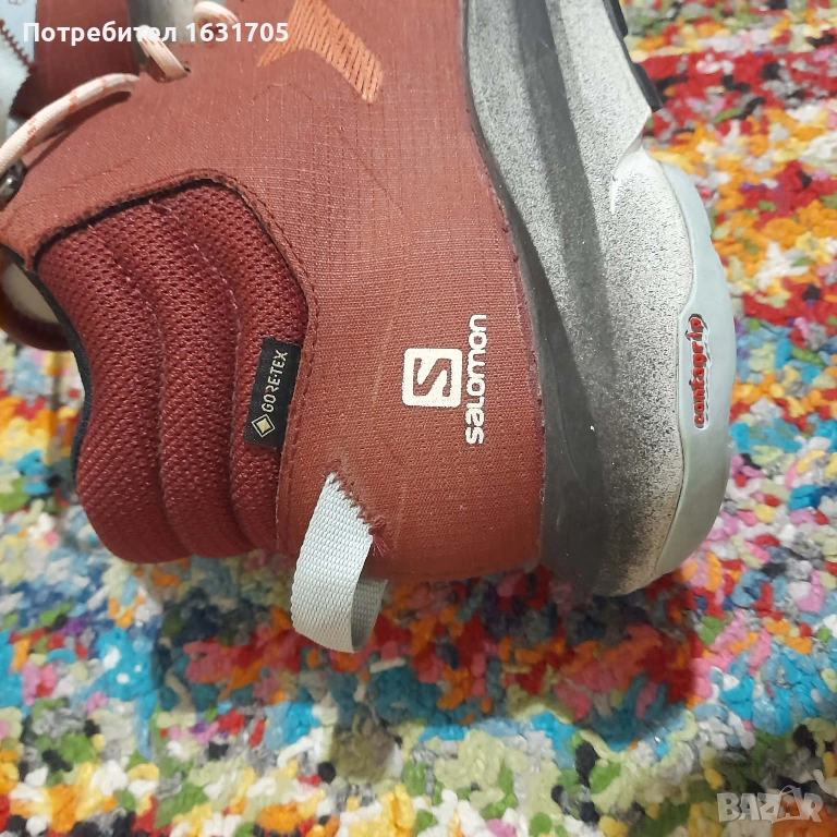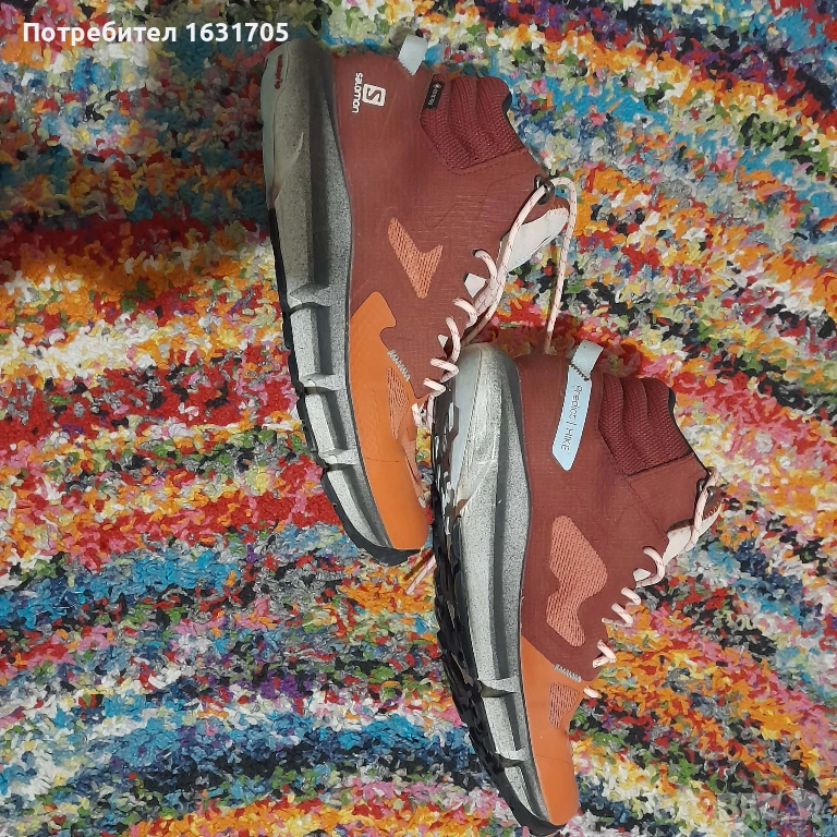 Моделът е Predict Hike Mid Gore-Tex от Salomon номер 39. Държът здраво крака и разполагат с горна част, изработена от синтетика за лека защита. Традиционно закопчаване с връзки. Краката са сухи, като същевременно позволявате на потта да се отвежда, благодарение на водоустойчивата мембрана GORE-TEX. Формованата стелка OrthoLite осигурява превъзходно омекотяване, а анатомичното разделяне помага за придвижване напред. За сцепление върху всякакви повърхности разполагат и с подметка Contagrip® MA, независимо дали е мокър, сух, твърд или мек терен. Осигуряват стабилна опора.
