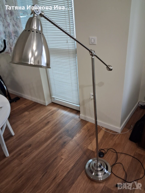 Винтидж метален лампион IKEA Barometer с регулируема рамка, масивна и стабилна.Размери: височина 120, рамо 88, диаметър стойка 25
