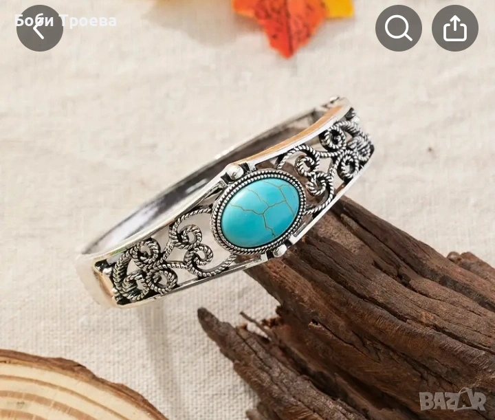 Разкошна тюркоазена гривна в ретро бохемски стил → Обява 53012614