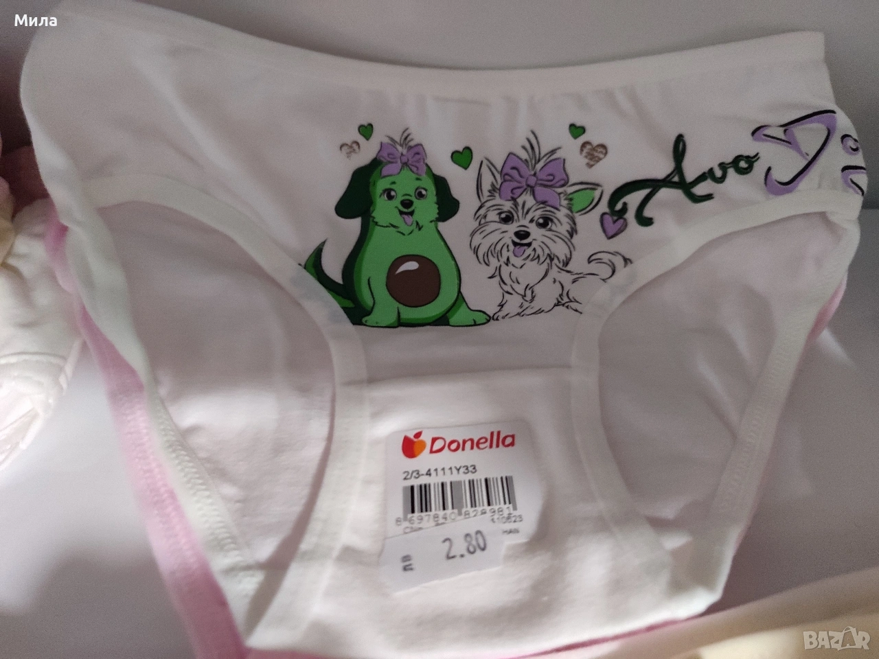 Детски бикини Donella, размери 2-3, 4-5, 6-7, 8-9, 10-11, състав 95% памук, 5% еластан, производител Турция. цена 2.80лв.