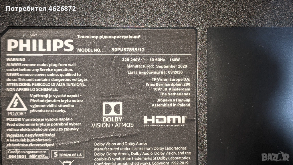 PHILIPS 50PUS7855/12-715GB170-M0A-BOO-005Y-715GA008-P01-000-003M-CV500U2-T01-CB-1 → Обява 53013025