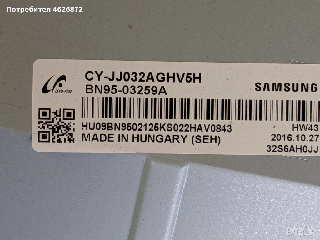 SAMSUNG UE32J4570SS-BN41-02360B , снимка 1 - Части и Платки - 53013373 SAMSUNG UE32J4570SS-BN41-02360B , снимка 2 - Части и Платки - 53013373 SAMSUNG UE32J4570SS-BN41-02360B , снимка 3 - Части и Платки - 53013373 SAMSUNG UE32J4570SS-BN41-02360B , снимка 4 - Части и Платки - 53013373 SAMSUNG UE32J4570SS-BN41-02360B , снимка 5 - Части и Платки - 53013373 SAMSUNG UE32J4570SS-BN41-02360B , снимка 6 - Части и Платки - 53013373 SAMSUNG UE32J4570SS-BN41-02360B , снимка 7 - Части и Платки - 53013373 1/7