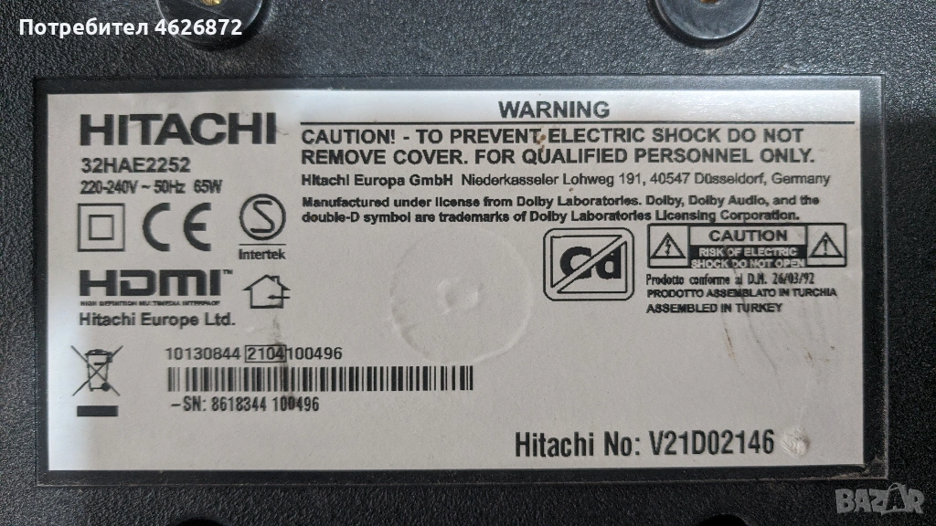 HITACHI 32HAE2252-17MB171-17IPS62 → Обява 53013577