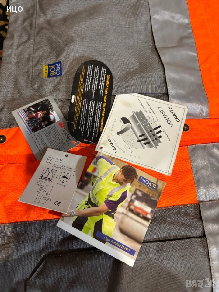 Ново работно яке на шведската марка prolong, вътрешно горнище със сваляши се ръкави ставащо на елек.С cordura, vent air, scothhlite. С много различни джобове. Размер L.