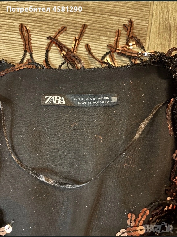 Дамска пайетна и много ефектна рокля Zara в черен и златисто-меден цвят, ползвана е един път. Размер S