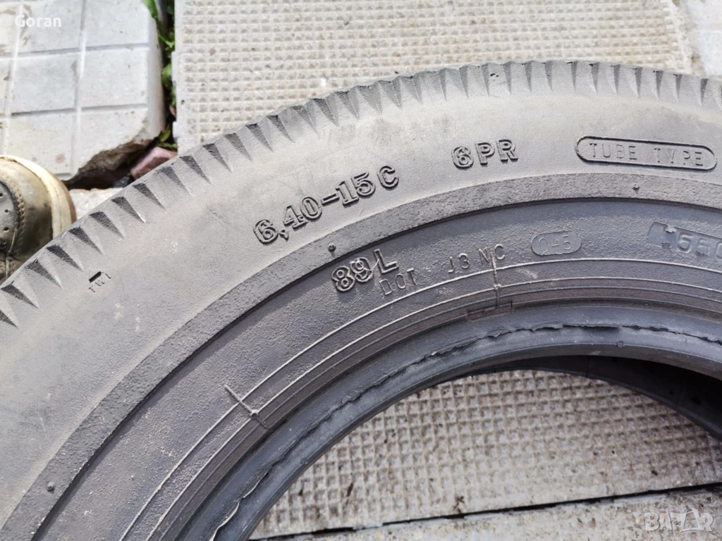 -Гуми оригинален размер 6.40 R15 чехословашки Barum. Отлично състояние, без пукнатини, визуално почти некарани. Цена 80 евро за общо 2 броя.