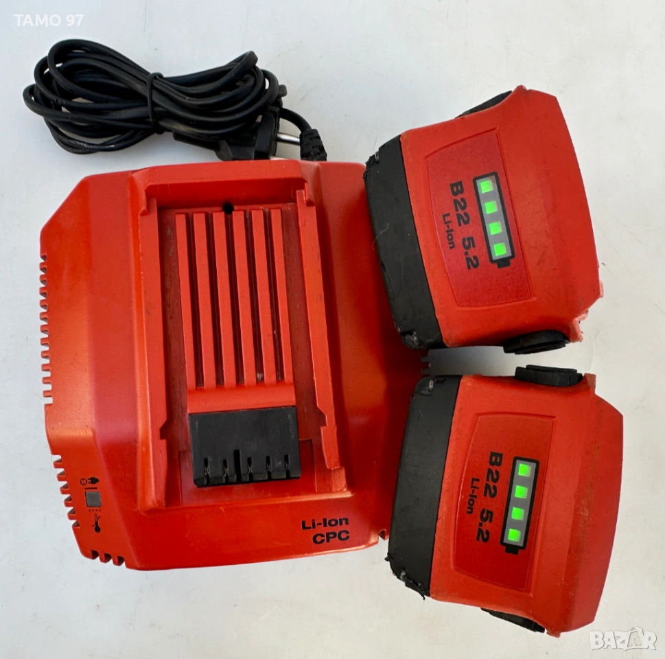 Хилти с 3 скорости. Машината е в добро визуално състояние и работи перфектно, внос от Франция. Обявената цена включва машината, 2 батерии по 22V 5.2Ah с индикатор, бързо зарядно и оригинален куфар.