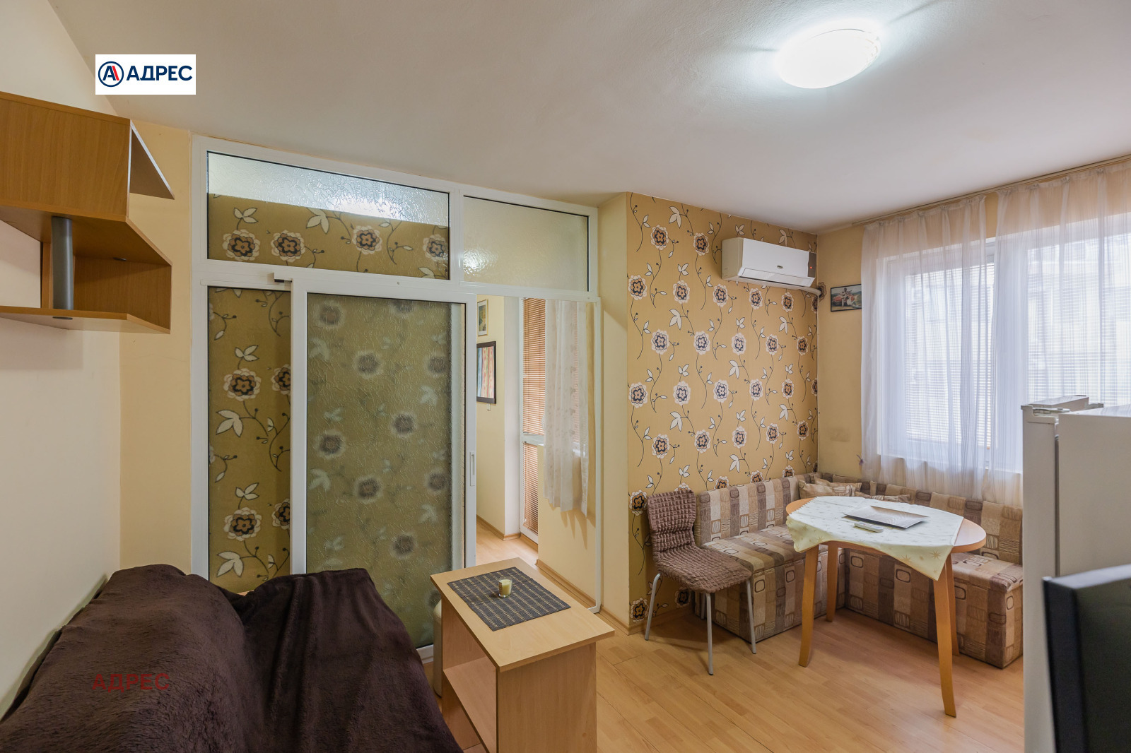 Кокетно двустайно апартаментче, напълно обзаведено готово за нанасяне. Състои се от дневна с кухненска част (напълно оборудвана), спалня, баня/тоалет заедно, балкон, входно антре. Отоплението и охлаждането е посредтсвом климатик. Подходящ за сам човек или двойка.