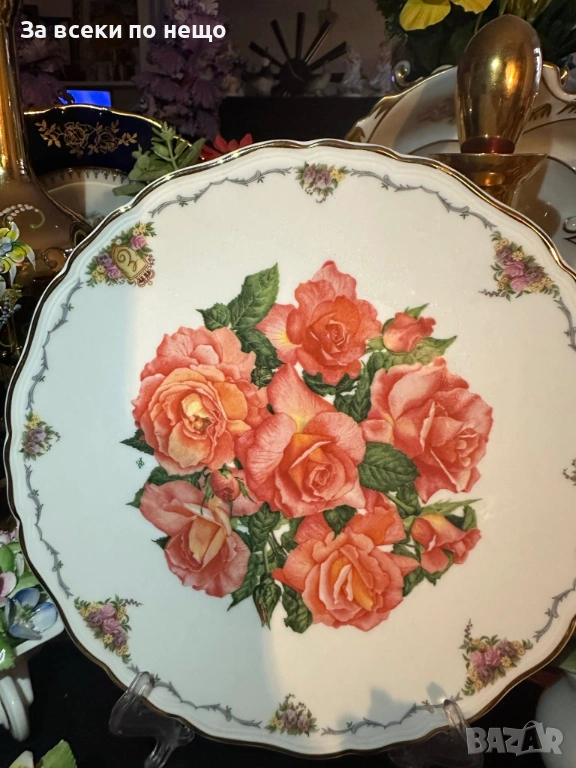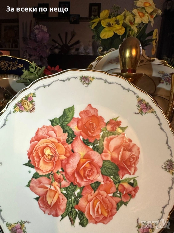 Royal Albert England 1990 “ Лпбов от пръв поглед” (историческа препратка), автор Sara Anne Schofield, лимитирана серия от поредицата “Цветята на любовта” - прекрасно плато с диаметър Ф 22 см, невероятна красота и феерия, великолепно качество и отлично състояние.