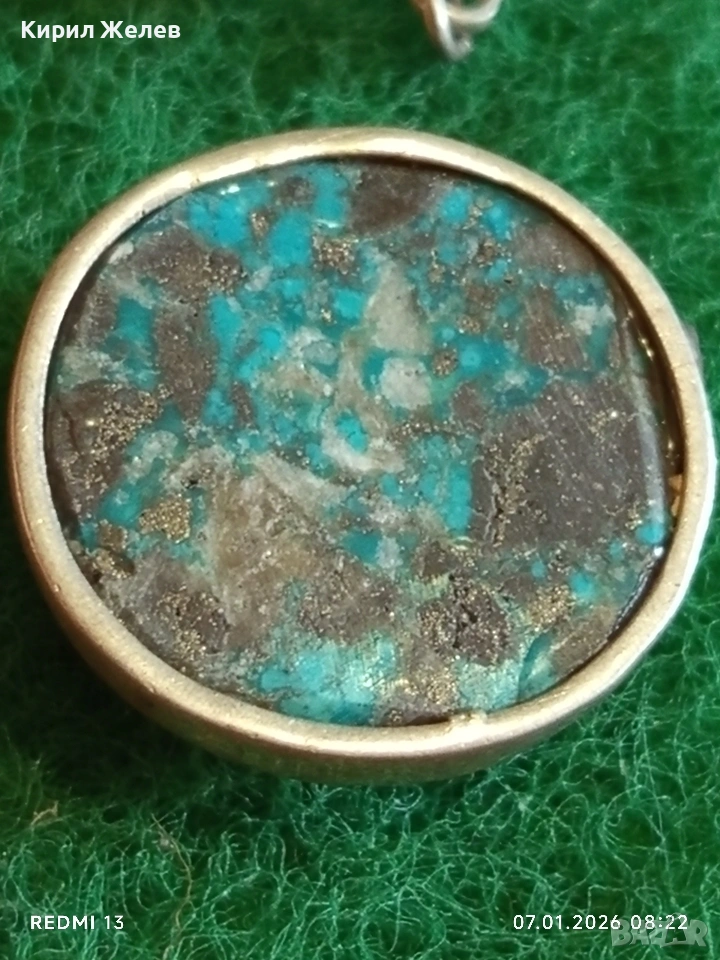 Сребърна висулка с Естествен ТЮРКОАЗ интересно Арт бижу 51812
