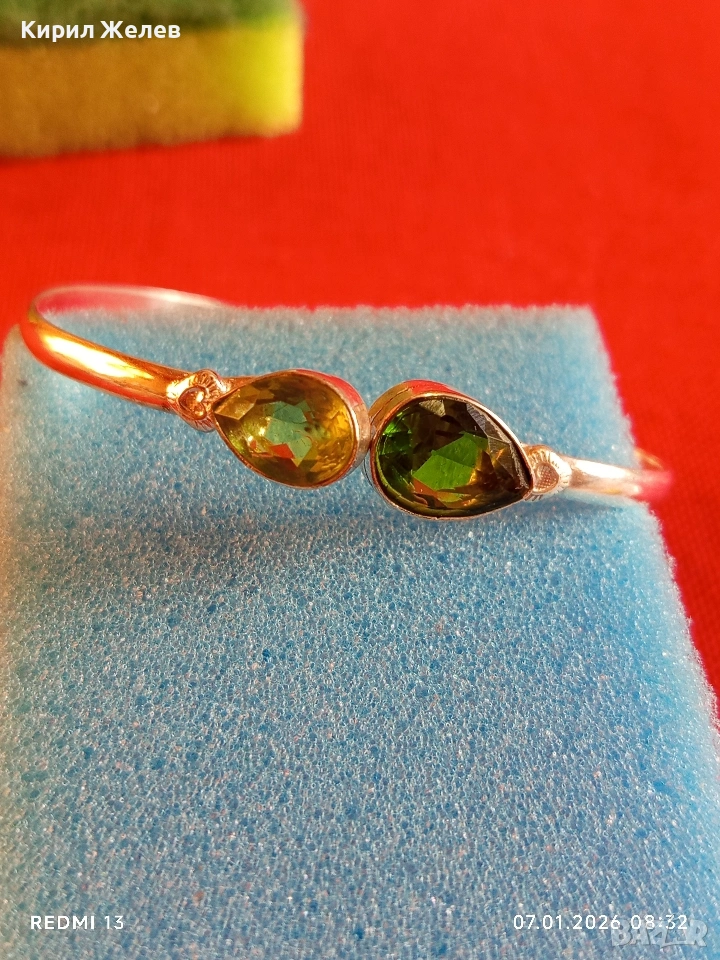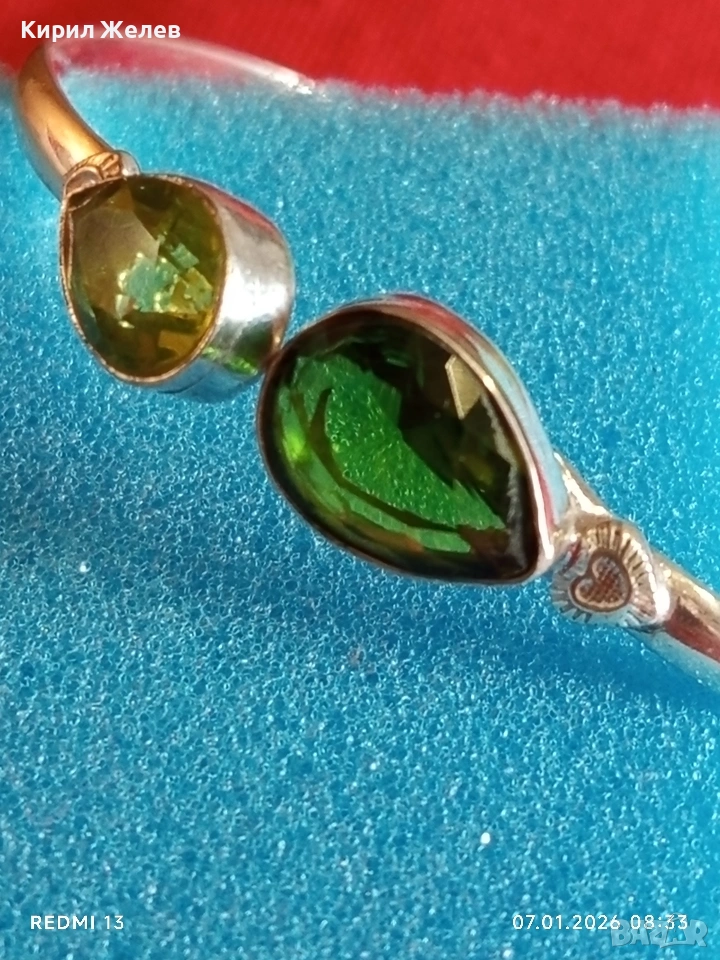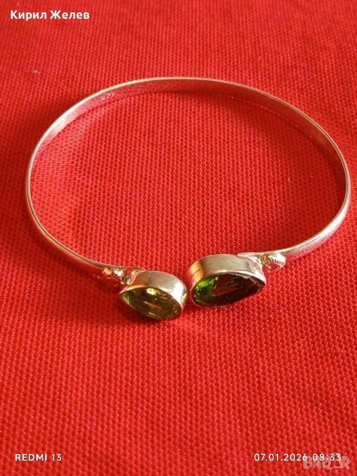 Сребърна гривна с ОЛИВИН камък на късмета , хармонията и обновлението има тонизиращ ефект 52532
