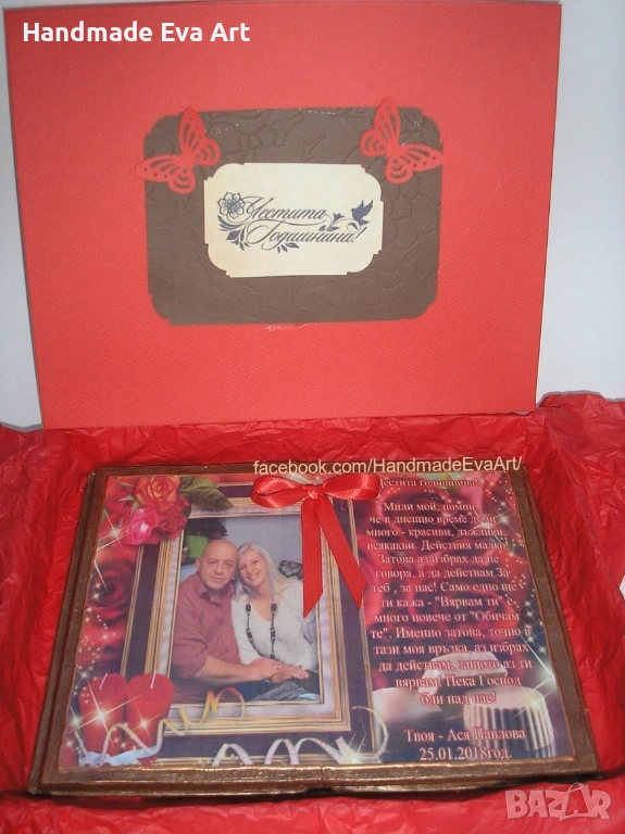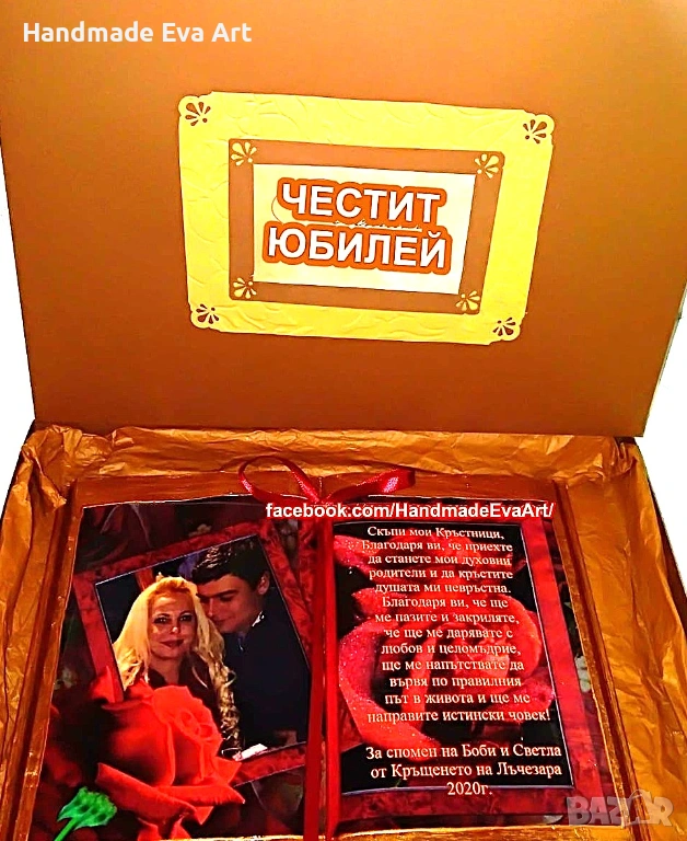 Ръчно изработени подаръци за Юбилей (за Свети Валентин- 14.02., за годеж, рожден ден и други подобни празници). Могат да бъдат персонализирани- със снимка/ цифри, икона, поздрав или друг персонален елемент. Могат да бъдат изработени: