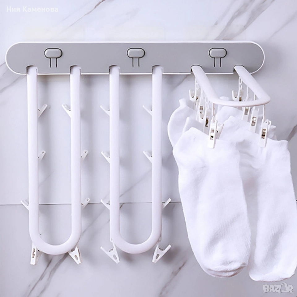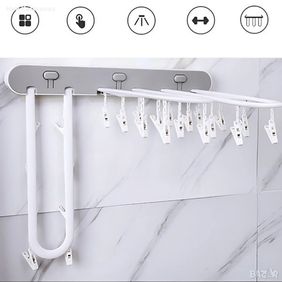 Самозалепваща се сгъваема стойка за сушене на дрехи с 24 щипки → Обява 53015547