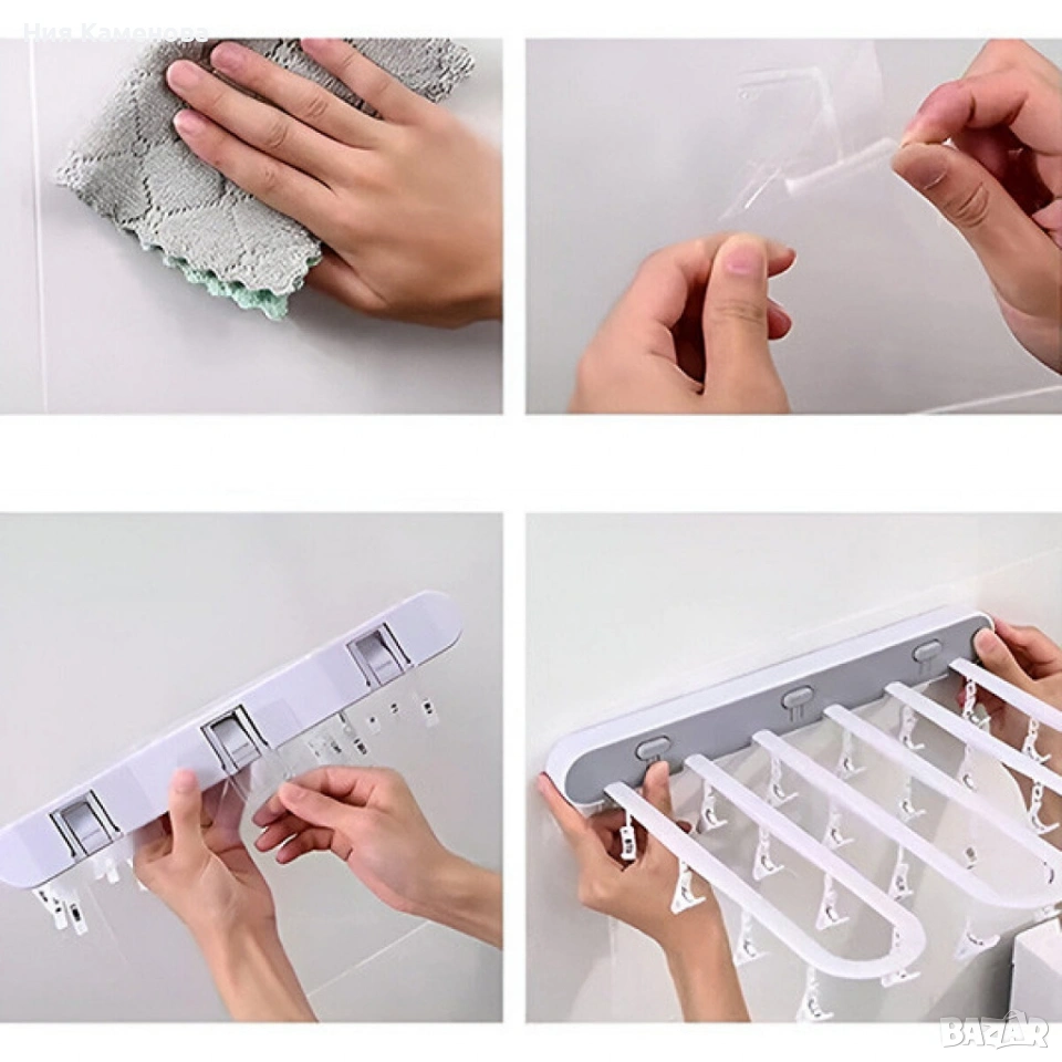 Продукт: Залепваща се сгъваема стойка за сушене на дрехи;