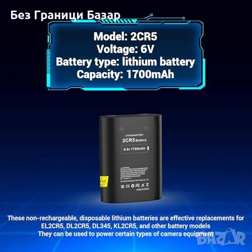 Литиева батерия тип 2CR5 за фотоапарати и специализирани устройства