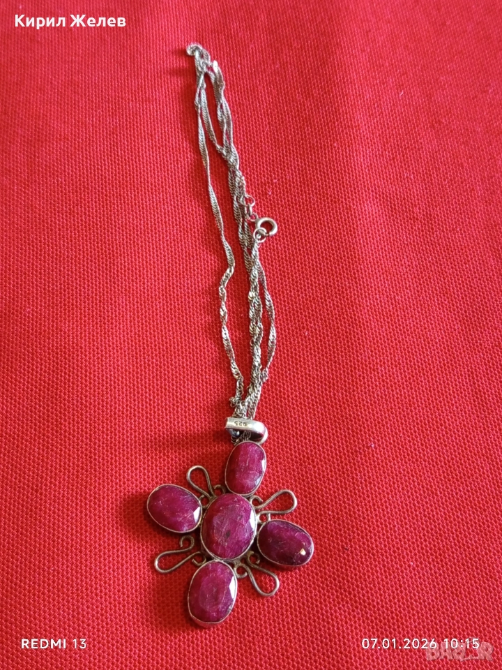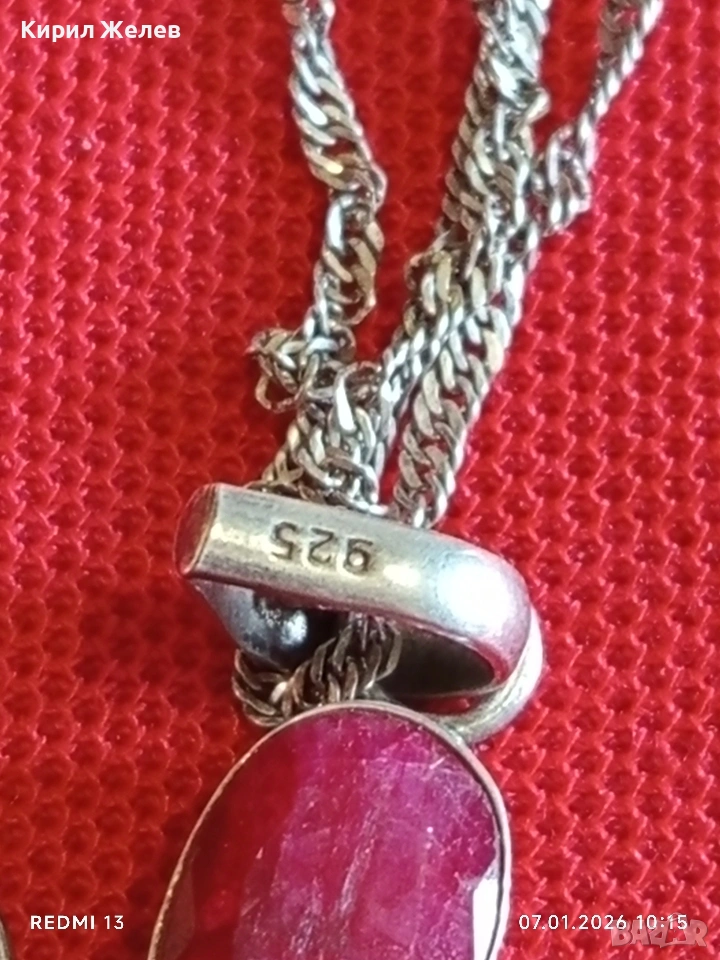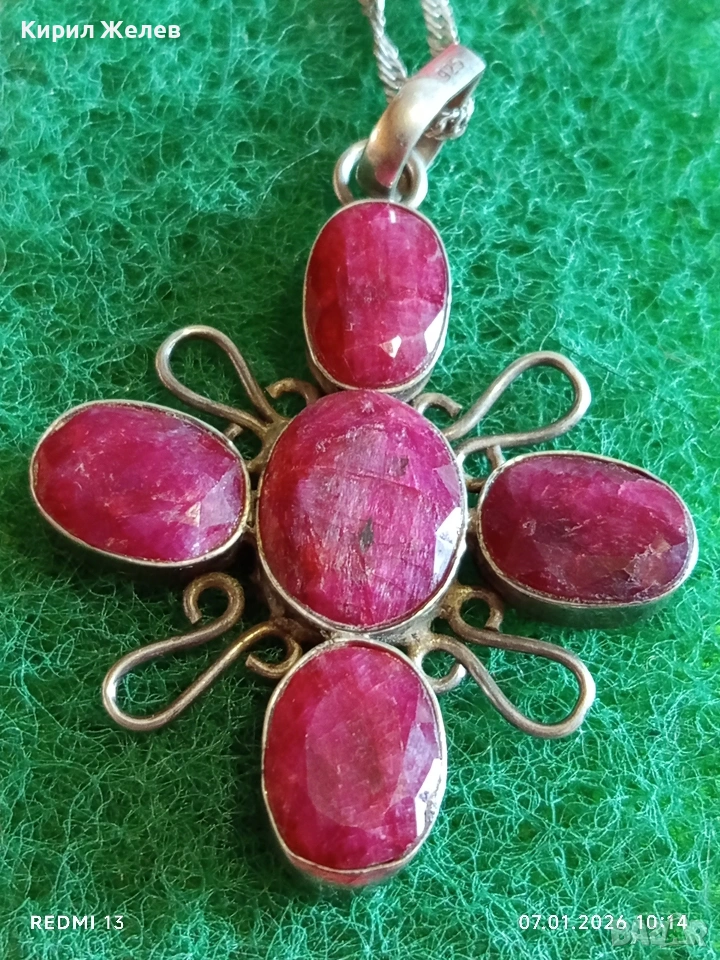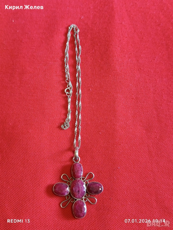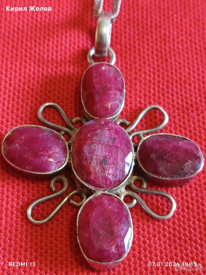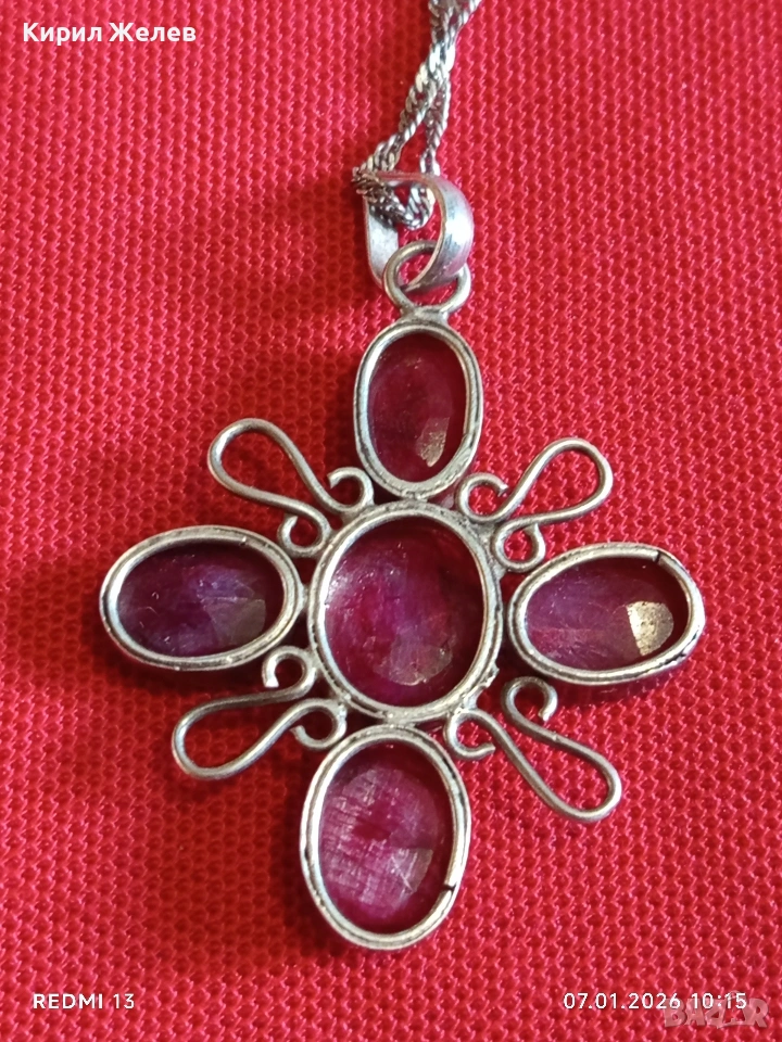 Етно сребърно колие с висулка с фасетирани Рубини ювелирна изработка 52525