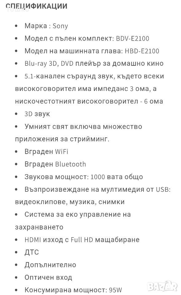 sony bdv e2100 → Обява 53016671