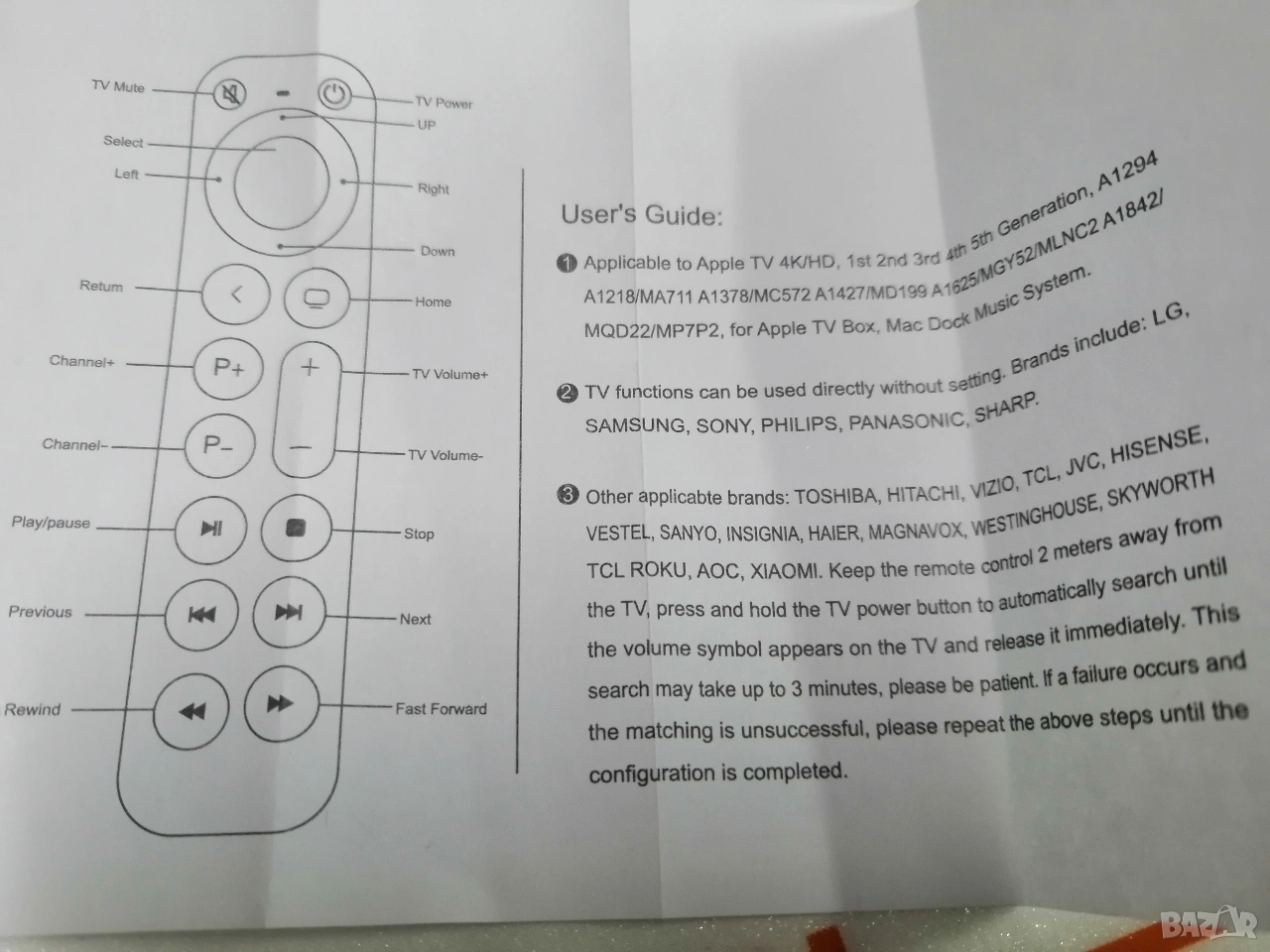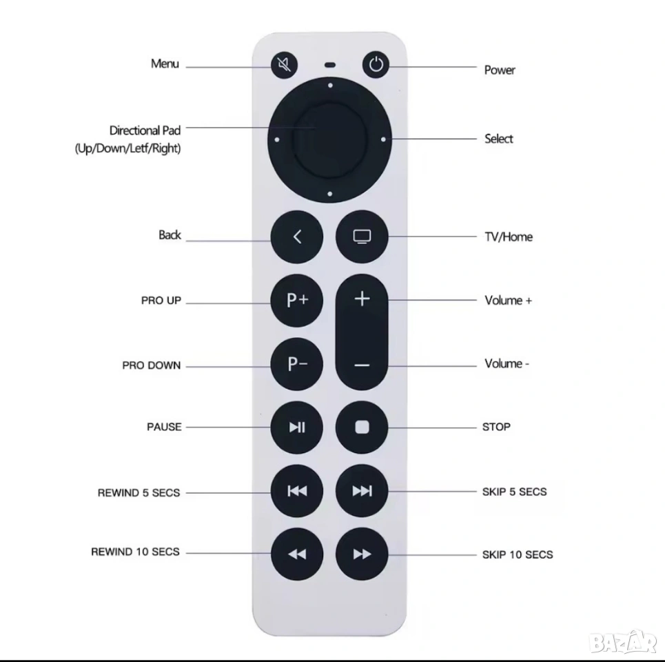 Забележка: Това е инфрачервено дистанционно управление, НЕ Siri Remote, без Bluetooth, без гласово управление, без тъчпад управление.