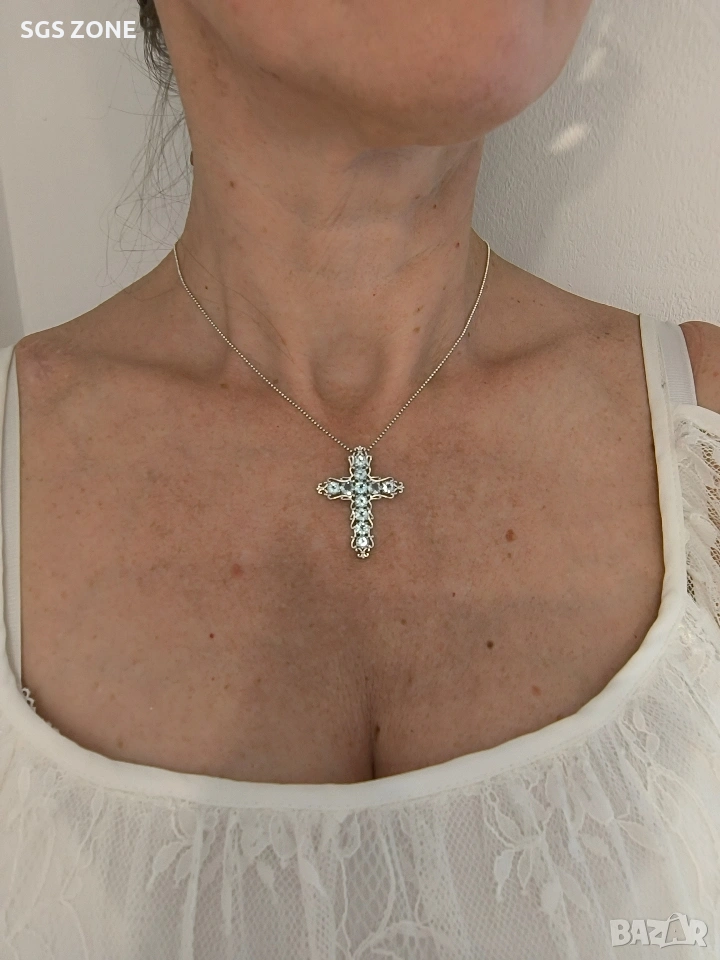 Кръст със естествен Скай Блу ТОПАЗ. Още снимки и видеа на продукта в Instagram и Facebook sgs.zone, уебсайт sgs.zone. Можем да изпратим допълнителна информация чрез Viber. Изпращане Speedy и Эконт. Шоурум в София, Дондуков, 53. Всички продукти са със сертификати и подаръчна кутия. Продукти имат допълнителни български маркировки