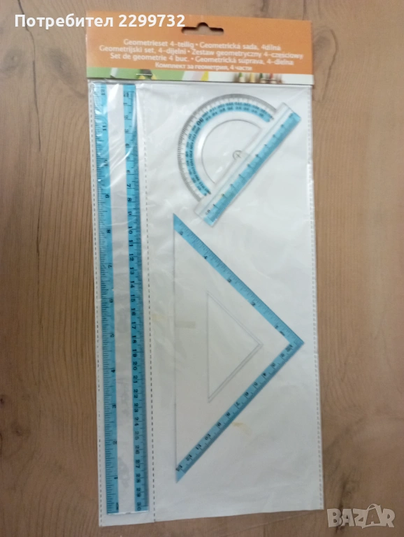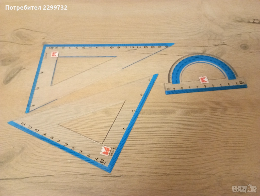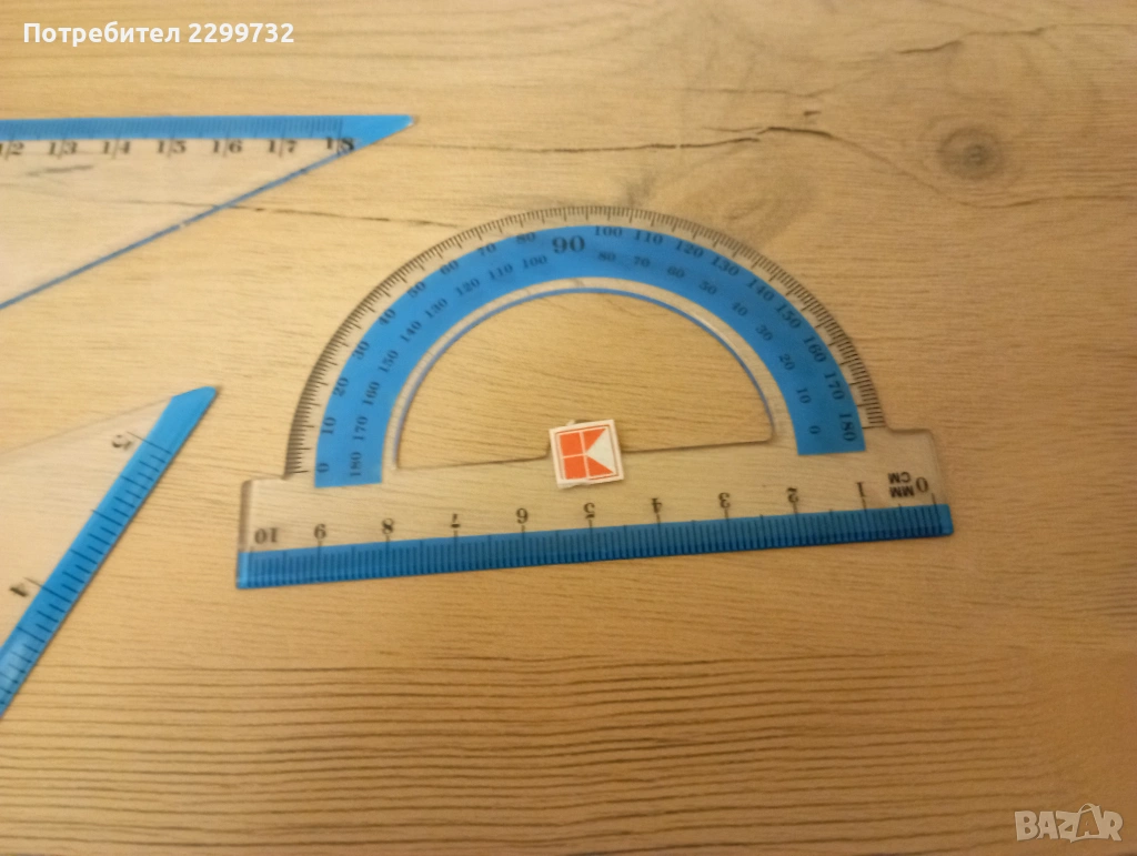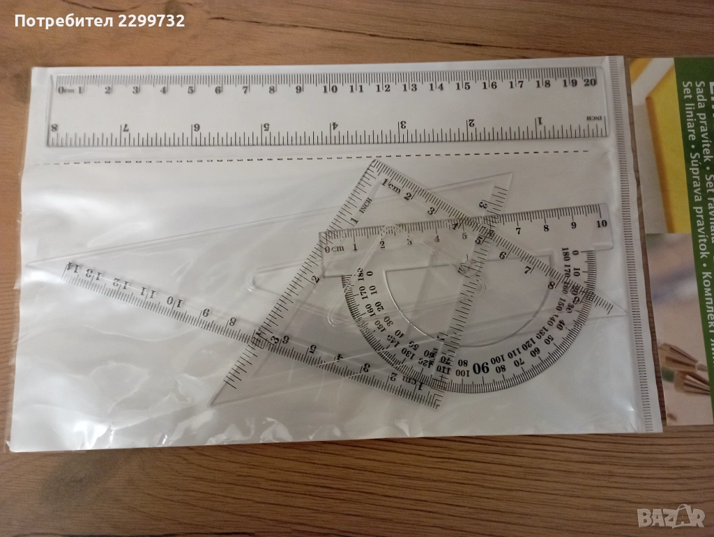 Комплект линия 30 см +транспортир + 2 бр. триъгълници / размери в см и инчове/ - налични 2 комплекта; цена за комплект 1,00 €