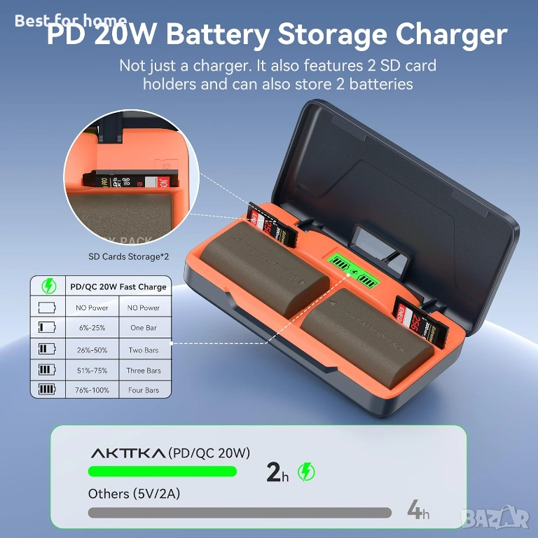 Преносим комплект за зареждане: кутия с 2 батерии LP-E6/E6N + слот за SD карта, HD LED дисплей за наблюдение на заряда.